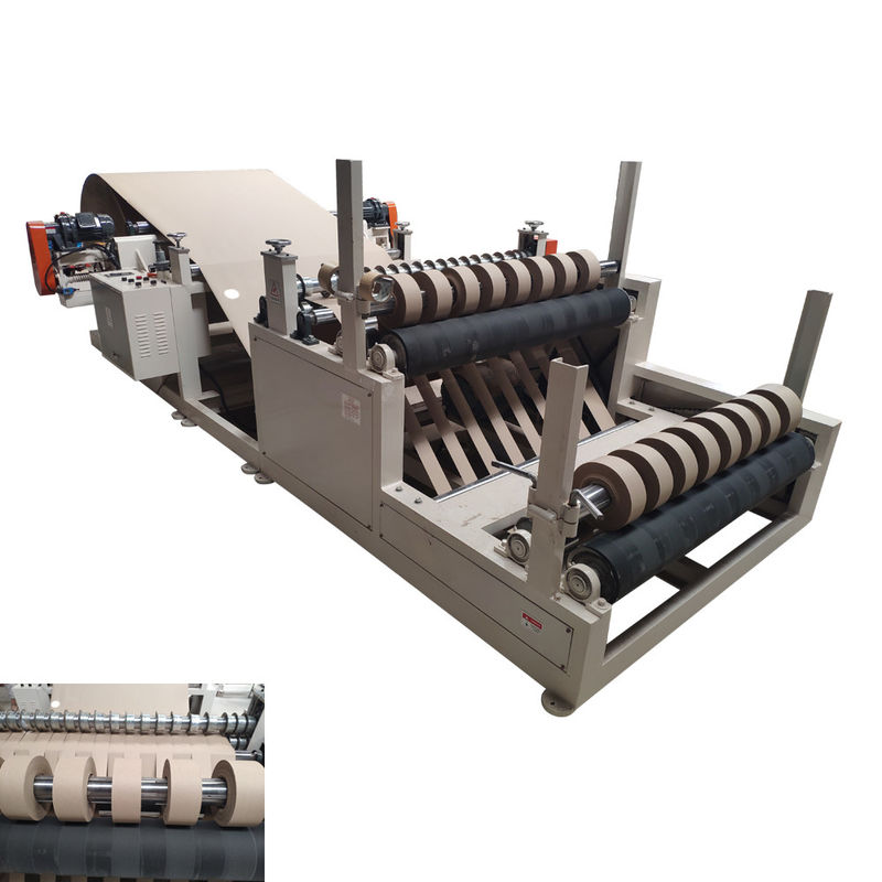 Kraftpapier snij- en omrolmachine is bedoeld voor het verwerken van kraftpapier jumbo rollen in kleine kraft papier rollen, de breedte van het eindproduct is veranderbaar door het aanpassen van het snijblad.Deze machine werkt met roll kern machine.